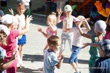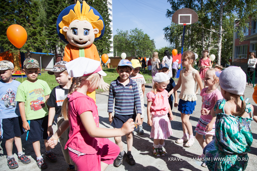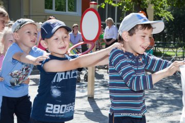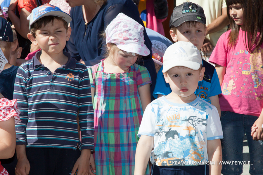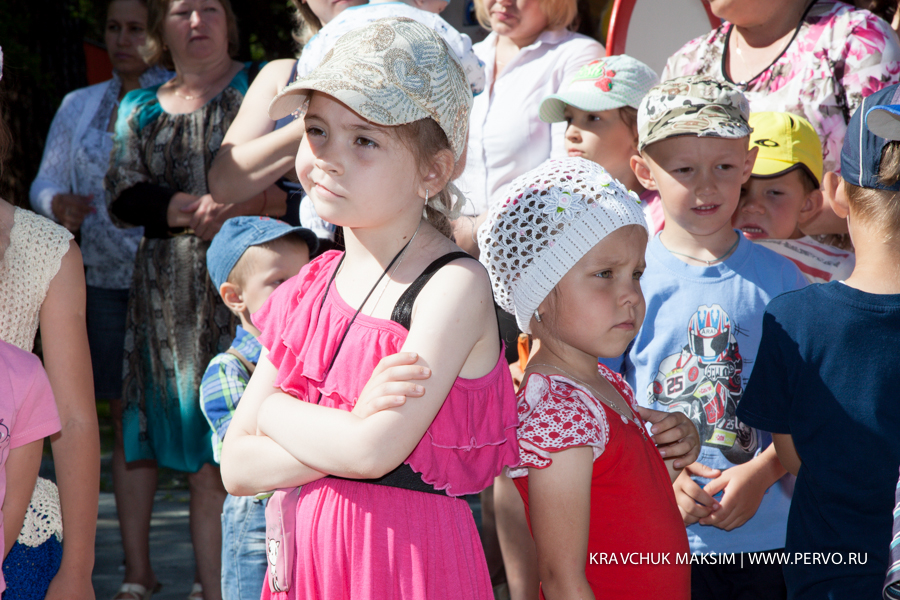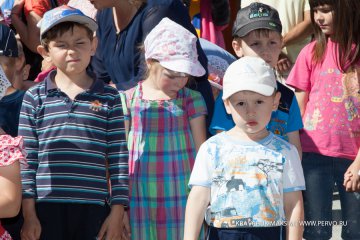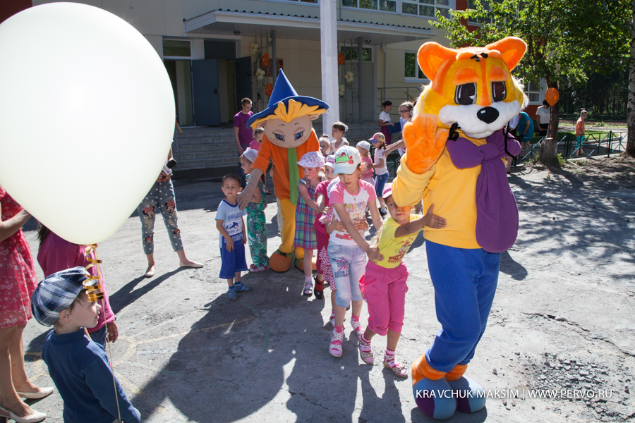 А пока малыши с шариками в руках в окружении мам и воспитательниц слушают, как их поздравляют с праздником взрослые дяди и тети.