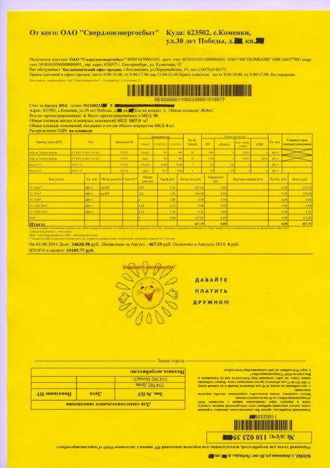 В преддверии начала отопительного сезона, «Свердловэнергосбыт» отправит цветные квитанции жителям 65 городов области, накопившим значительный долг. В сентябре почти 10 тысяч бытовых абонентов получат жёлтые квитанции, как напоминание-предупреждение о готовности энергетиков перейти к более жестким мерам по борьбе с долгами.