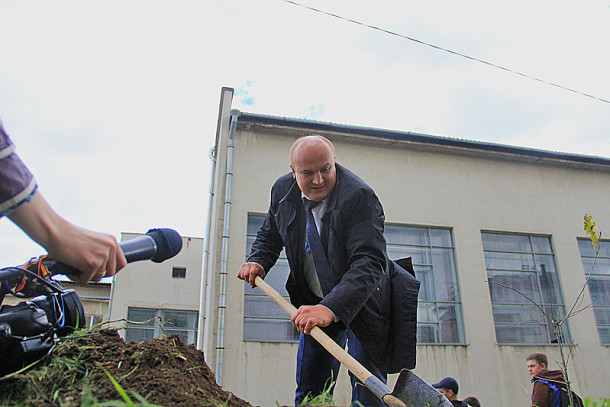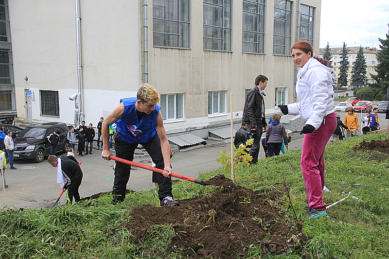 Сегодня прошло мероприятие не столь масштабное. За дворцом Новотрубного завода перед центральной библиотекой студенты металлургического колледжа, члены городского совета ветеранов, первоуральские депутаты и ребята из «Молодой гвардии» совместно с главой города Николаем Козловым высадили еще 50 дубков.