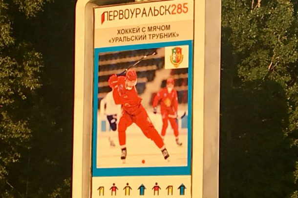 Городская администрация, которая устанавливала щиты, уделила внимание и спорту, отдельно отметив первоуральскую команду по хоккею с мячом «Уральский трубник». Вот только на фотографии, которая висит на въезде в город, даже близко не первоуральские спортсмены.