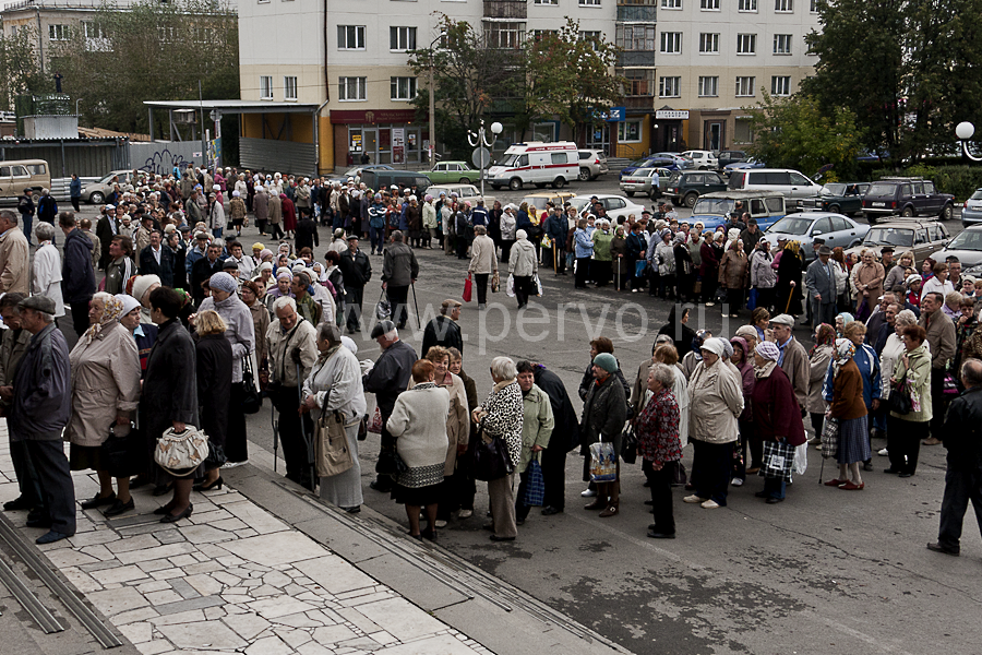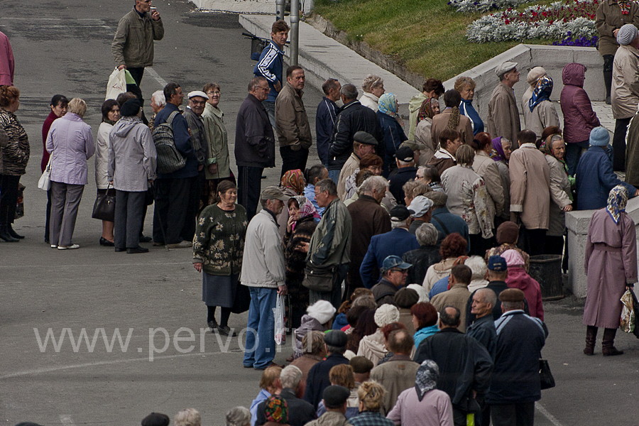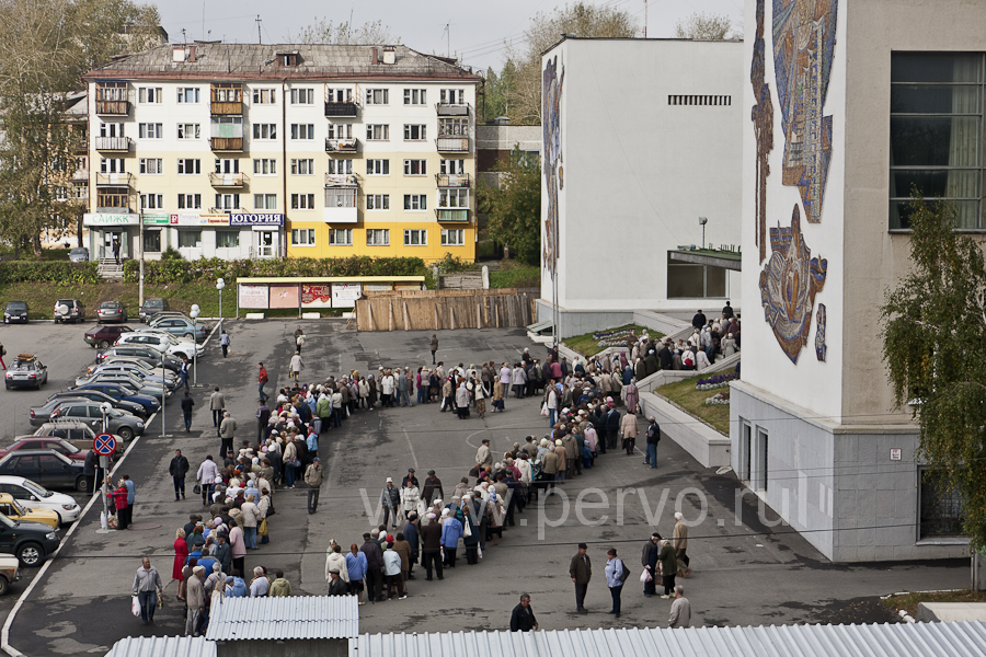 С воскресенья стартовала акция, организованная первоуральским отделением партии "Единая Россия". В преддверии выборов единороссы решили "побаловать" ветеранов ПНТЗ подарками. В результате оригинально спланированной акции перед парадным входом ДК ПНТЗ выстроилась даже не одна, а две очереди.