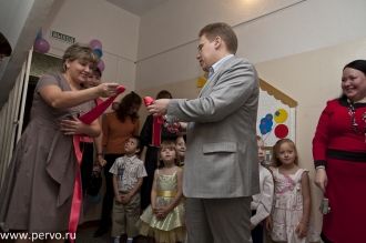 Две просторные и светлые группы уплотнены на 10 малышей каждая. В тесноте да не в обиде – не в этом случае. Ребятам хватит места и для подвижных игр, и для сна. Начальник Управления образования Нина Журавлева пояснила, что пока мебель стоит старая, но в скором времени подвезут новую. Кроме того, Нина Викторовна сама провела небольшую экскурсию по группам для родителей, детсадовцев и гостей. Традиционно торжественное мероприятие посетили Глава Первоуральска Ю. Переверзев, управляющий делами администрации Ю. Штыменко, а также Лев Ковпак, депутат Екатеринбургской городской думы.