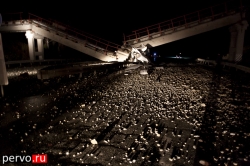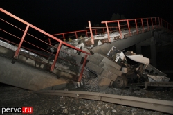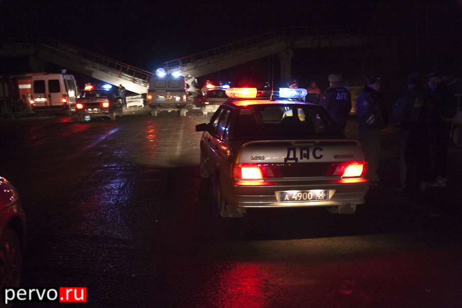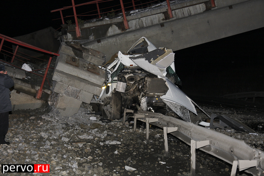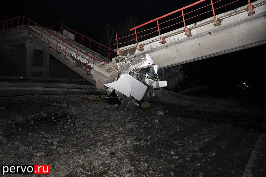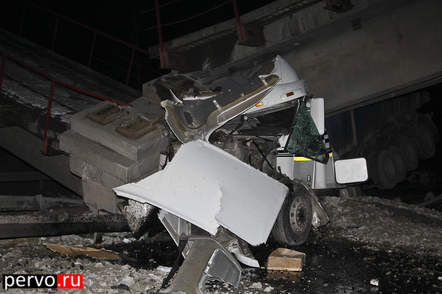 Сегодня ночью на трассе Екатеринбург-Пермь произошло ДТП с участием грузового автомобиля Freightliner Century и опорой моста. Как рассказал водитель, виновник ДТП, он ехал с посёлка Доломитовый, где загрузился щебёнкой и направлялся в Новый Уренгой. Со слов водителя грузовика, наезд на опоры моста он совершил из-за ослепления встречным транспортным средством. В результате ДТП произошло обрушение железнодорожного моста. Водитель серьёзных травм не получил.